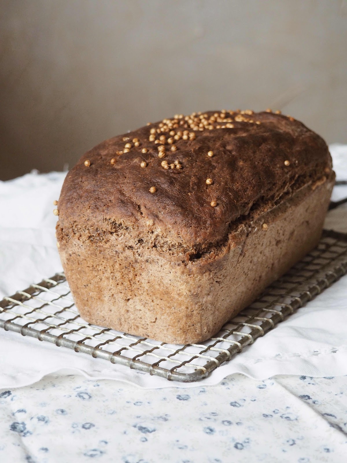 Первоначально я размещала другой вариант рецепта, но стала чаще готовить хлеб и поняла, что некоторые моменты мне не удобны. Пересчитала ингредиенты исходя из своей формы, в которой выпекаю хлеб. Это классическая форма для кекса. Плюс зерна кориандра сверху постоянно не держатся и осыпаются, я стала добавлять их внутрь теста вместе с молотыми, еще увеличила количество солода для большей ароматности и время расстойки.