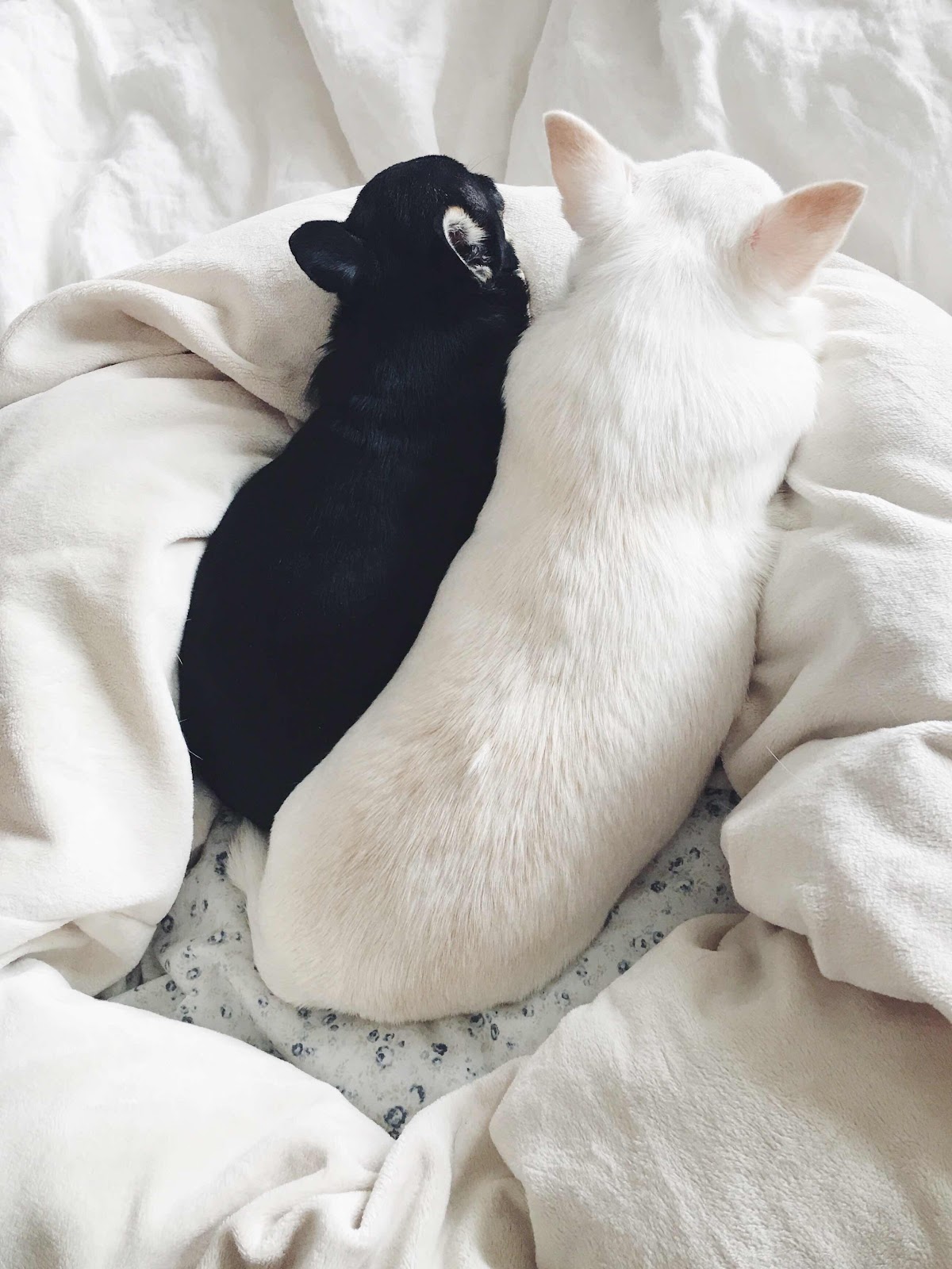 В сентябре солнце меняет направление и начинает светить с утра прям на нашу кровать. Уступаю свое место, чтобы свои носы погрели мои песики 🐻🐰