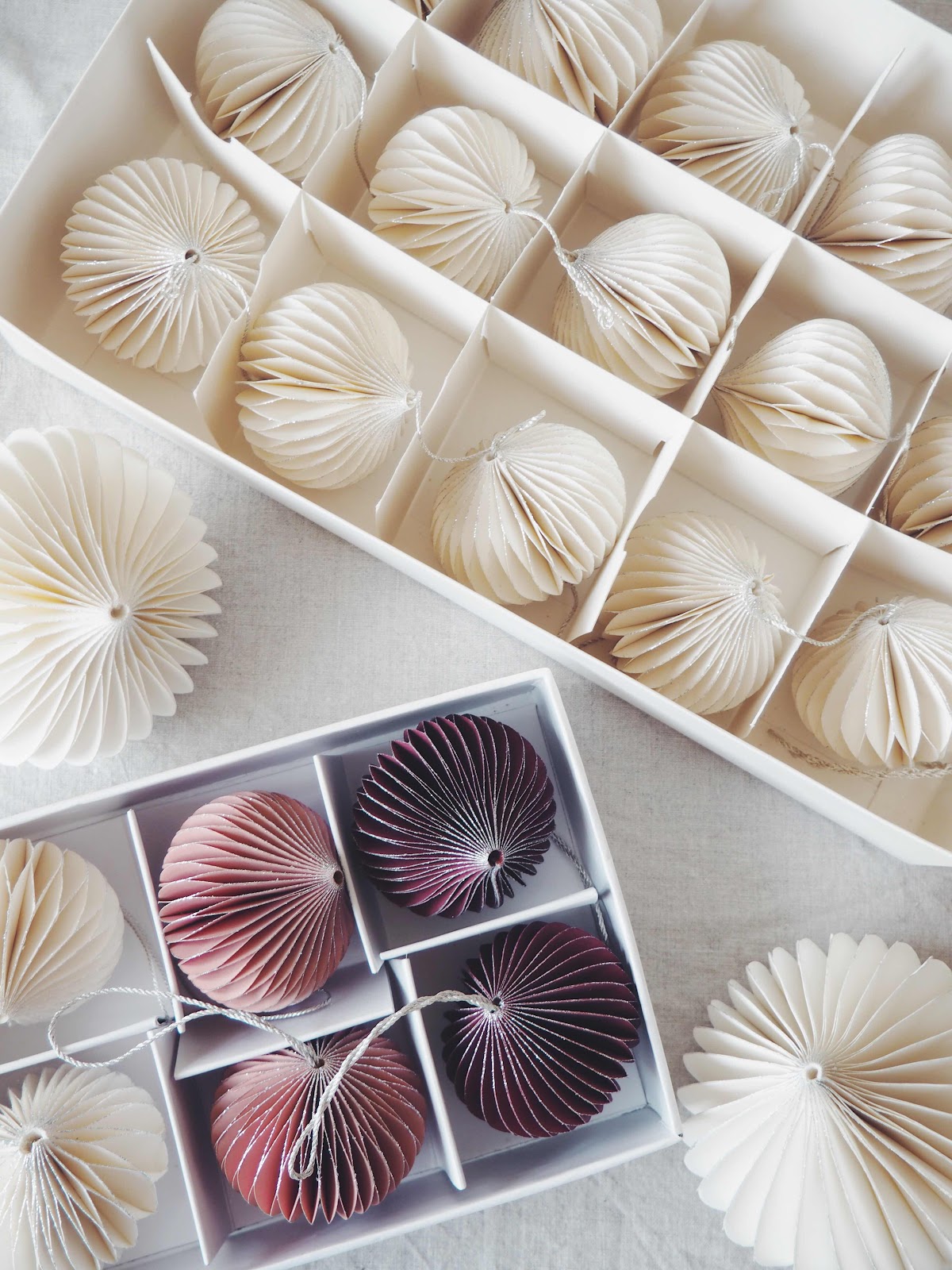 Много бумаги, стекла и дерева (я помню в детстве были деревянные игрушки и мы вырезали снежинки из бумаги) в деревенском скандинавском стиле. Оттенки тоже приближенные к естественным натуральным - теплые красные, яркая зелень и золото.