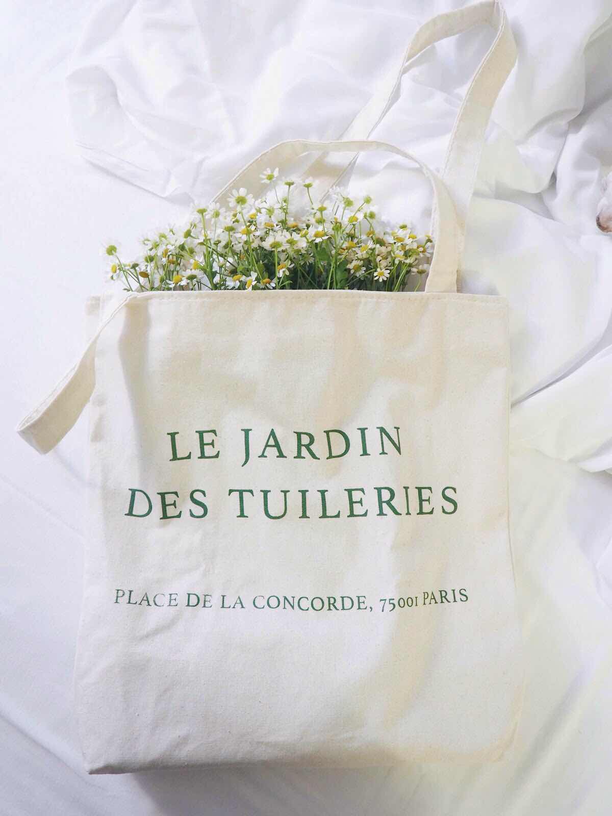 На шоппере конечно особенно прекрасна надпись зеленого цвета под цвет стульев в парижских садах и именна она стала главной причиной в моем решении купить этот шоппер :)